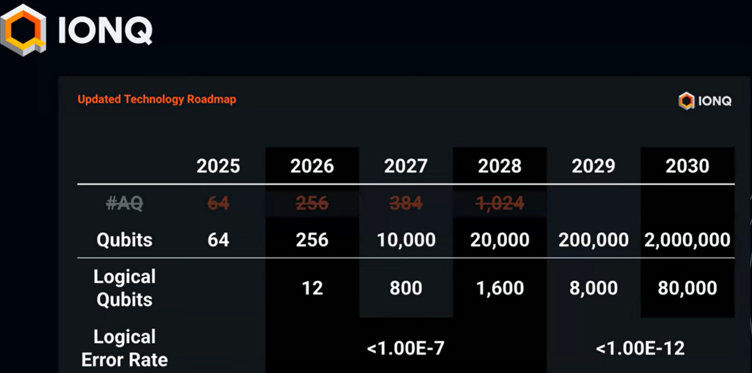 표 1: IonQ의 양자 컴퓨팅 로드맵 (2025-2030) - 업데이트