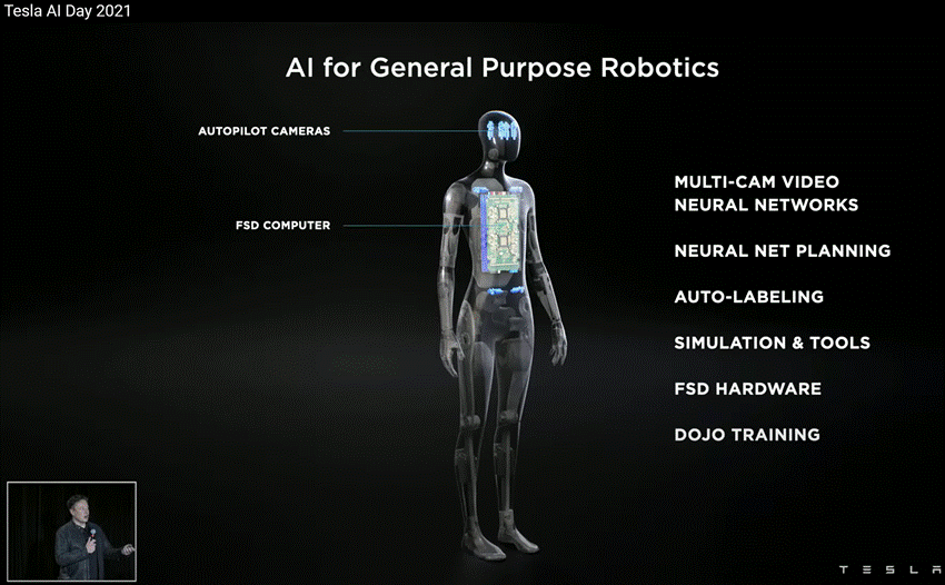 두 시스템 모두 멀티 카메라 비전과 딥러닝 기반 추론을 사용하는 점은 공통적이지만, 신경망의 출력과 제어 대상에는 차이가 있습니다. FSD 신경망은 차선을 인식하고 주행 경로를 산출하여 자동차의 조향/속도를 제어하는 반면, Optimus의 신경망은 주변 사물을 인식하고 보행 경로 및 팔/손 동작을 산출하여 다관절 로봇의 관절을 제어합니다. 구조적으로 FSD의 비전 신경망은 8대의 카메라로부터 얻은 영상을 처리하여 도로상의 차량/보행자/신호등 등을 식별하고 주행 가능한 공간(drivable space)을 예측하는 수십 개의 하위 네트워크로 이루어져 있습니다.