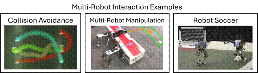 나아가 여러 로봇 또는 로봇과 인간이 함께 협력하는 다중 에이전트 상호작용 역량도 고려되는데, 예컨대 군집 드론의 충돌 회피, 두 대의 로봇이 협동하여 물체 운반, 로봇 축구 등이 해당합니다. 이런 경우 다중 에이전트 강화학습(MARL)을 적용하며, 각 로봇의 목표가 일치하는지에 따라 협력 혹은 경쟁 시나리오로 학습 구조가 복잡해집니다[arxiv.org].